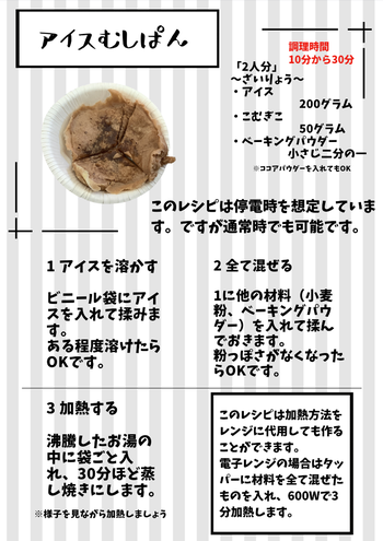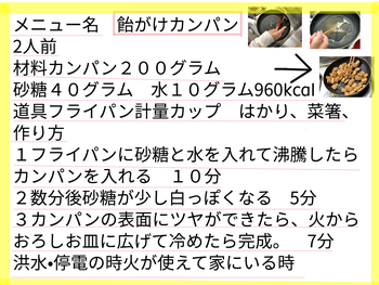 災害時にも糖分が取れて、お腹にもまぁまぁたまる、簡単料理!