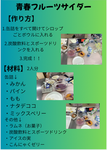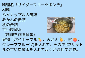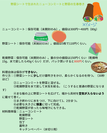 水、電気、ガス不要、料理初心者でも簡単に作れるサッパリした料理。