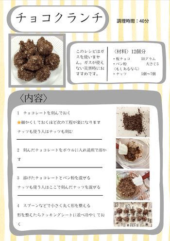 災害時甘い物が欲しい?そんな時に役立つ、水、電気、ガス、全て使わないレシピ紹介。