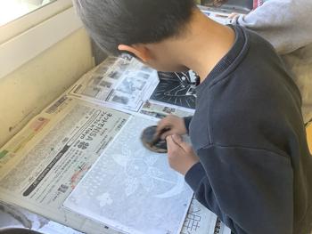 4年生 図画工作 「ほってすって見つけて」 1月21日