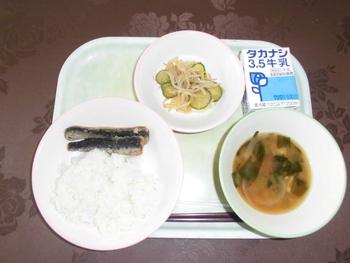 ・ごはん ・いわしのかばやき ・ごまじょうゆあえ ・みそ汁 ・牛乳