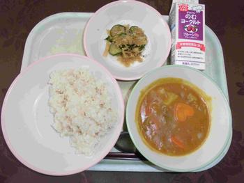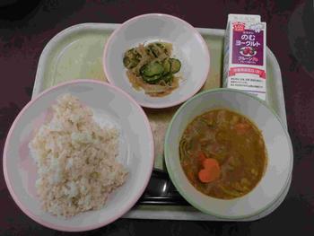 ・はいがごはん ・ポークカレー ・ごま酢あえ ・プルーン発酵乳