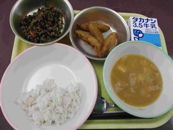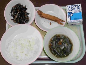 ・ひじきごはんの具 ・さかなのから揚げ ・さわにわん ・牛乳