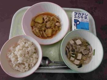 ・ごはん ・ジャガマーボー ・卵とトマトのスープ ・牛乳