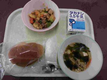 ・はいがパン ・チリコンカーン ・野菜ソテー ・ミックスフルーツ ・牛乳