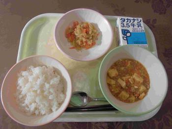 ・ごはん ・麻婆豆腐 ・中華あえ ・牛乳
