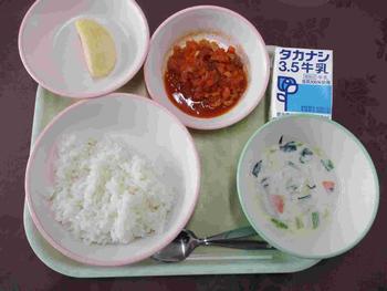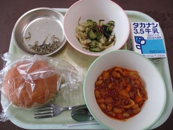 ・チーズパン ・チリコンカーン ・海藻サラダ ・牛乳