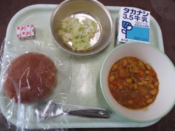 ・はいがごはん ・チリコンカーン ・キャベツサラダ ・チーズ ・牛乳