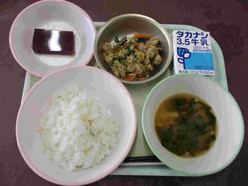 ・ごはん ・かつおのごまみそあえ ・いそ香あえ ・すまし汁 ・牛乳
