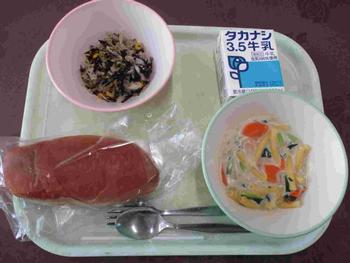 ・ロールパン ・ツナペースト ・パスタスープ ・なし ・牛乳