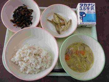 ・ごはん ・ししゃもフライ ・ひじきごはんの具 ・けんちんじる ・牛乳
