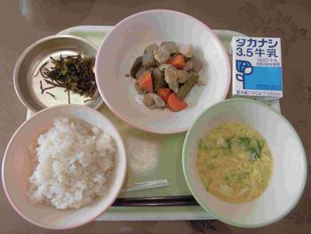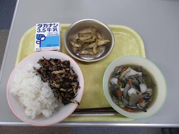 ・ごはん ・ひじきごはんの具 ・魚のからあげ ・けんちんじる ・牛乳