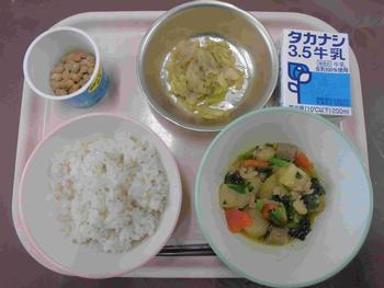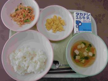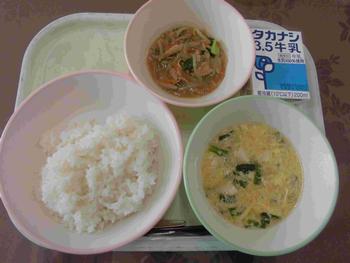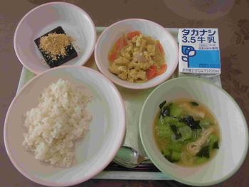 ・ごはん ・おやこに ・いそかあえ ・大豆とじゃこのいりに ・牛乳