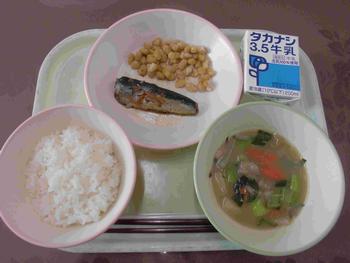 ・ごはん ・にざかな(いわし) ・あげだいず ・ぶたじる ・牛乳