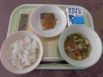 ・麦ごはん ・さばのみぞれあんかけ ・けんちん汁 ・焼きのり ・牛乳