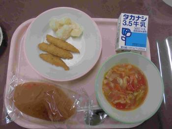 ・ぶどうパン ・いりこフライ ・こふきいも ・ミネストローネ ・牛乳