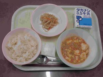 ・はいがごはん ・麻婆豆腐 ・ちゅうかあえ ・牛乳