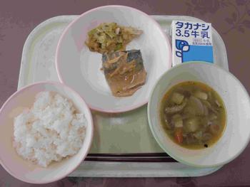 ・ごはん ・サバの味噌煮 ・磯香あえ ・けんちん汁 ・牛乳