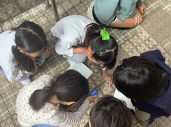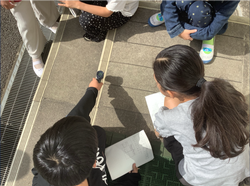 3年生は理科の授業で日なたの地面と日陰の地面の温度を放射温度計で測って調べました。実際に触って温度差を感じたり、温度を測って予想していたより温度差があり驚いたりする児童がいました。