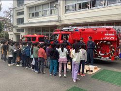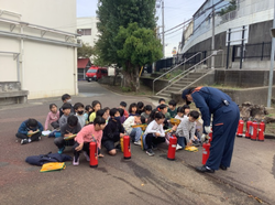 10月31日(金)に3年生は消防出前授業を行いました。消防士の方々にご協力していただき消防車のことや消火器の使い方、119番通報の仕方などを詳しく教えていただきました。
