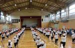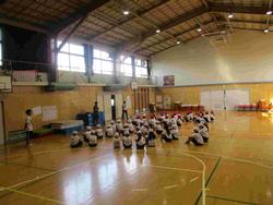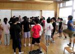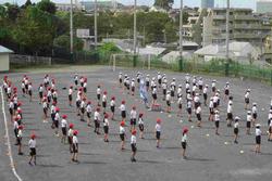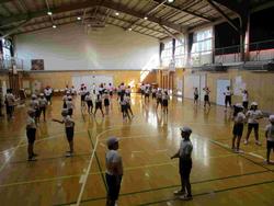 今日は日差しも少なく、過ごしやすい一日でした。割り当ての関係でCSFに向けた練習も体育館や校庭そして教室などの利用して始まりました。体育館では6年生がソーラン節をしていました。写真は4年生が教室でエイサーの動きをしているところです。