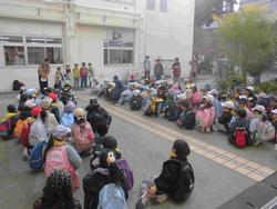 午前中に30分間ほど不審者対応訓練を実施しました。最初に本校職員が作成した不審者対応の動画を全校で視聴した後に実際に訓練をしました。