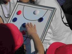 【4年生 教室での事前練習の様子】 【4年 ティベースボールの様子】
