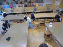 1・2時間目には4年生が図工室でのこぎりで木材をカットしていました。軍手をしながら安全に気を付けて活動していました。