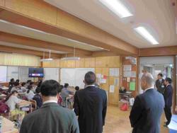 本日の午後に高知県教育委員会の皆様が本校で取り組んでいるチーム担任制・教科分担制の視察のため来校されました。教室に高知県の方が入られると子どもたちから「どこから来たんですか?」「こんにちは」などの挨拶をしてくれました。3年生の音楽では、合唱の学習でした。「ぜひ歌を聴いてください」と高知県の皆様に歌声を披露してくれました。
