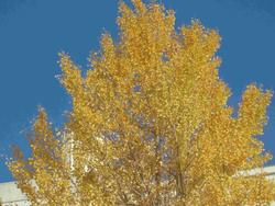 校内のイチョウ等の木々が紅葉で青い空とのコントラストがとてもいいです。