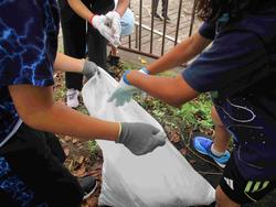 次の写真は6年生の理科の実験の様子です。植物に袋をかけて気体検知管を使って二酸化炭素の量の変化を調べています