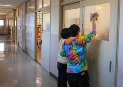 12月1日、第8回委員会活動がありました。環境委員会は校内の状況をみて、窓の桟を中心に清掃活動を行っていました。委員会活動では、月ごとの振り返りや今後の計画だけでなく、実際の作業も行っています。