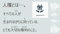 この経験を通して、人にはいろんなちがいがあるけどそれを大切にする気持ちをもち、みんなが安心して生活できるように人権を大切にしていく思いを強くもってほしいと思います。