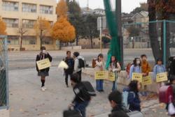 毎月最初の一週間を「あいさつウィーク」として、あいさつ隊の人が南門や西門のところであいさつ運動を行っています。12月に入って、一段と寒くなってきましたが、「おはようございます」の元気なあいさつが響いていました。