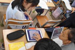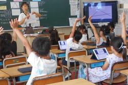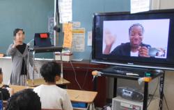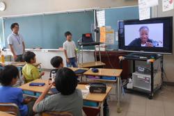 子どもたちは緊張しながらも、離れた場所にいるAETとのコミュニケーションを楽しんだり、そのやりとりをもとにして友達とのコミュニケーションに生かしたりしていました。