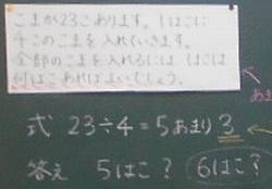 この日は、問題(何を訊かれているか)に応じて「あまり」を考えに入れて答えるのか、「あまり」をはぶいた状態で考えるのかを判断するという学習でした。