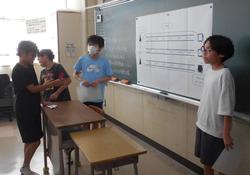9月25日、運動会係打ち合わせがありました。これは5年生と6年生が9つの係に分かれて、それぞれ運動会に向けての取組をするものです。「運動会実行委員」「放送」「スローガン掲示作成」「ポスター作成・参加賞授与」「1・2年生の児童誘導」「用具」「表示」「応援隊」「大玉送り」の係ごとに、役割や動きの確認をしたり作業を進めたりしました。