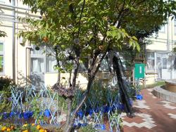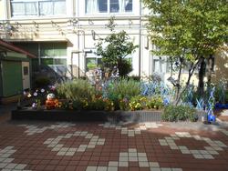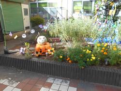 お花ボランティアの皆さんが、丸池前の花壇をハロウィン仕様に飾ってくださいました。前を通る子どもたちからは「うわぁ(*'▽')」と声があがっていました。