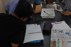 6年生が、理科の学習で火山灰の観察をしていました。双眼実体顕微鏡を使って火山灰を見ると、一つ一つの粒の形をしっかりと見ることができました。川の流れによってできた砂粒との形の違いを確認していました。