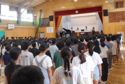 9月29日、音楽朝会がありました。今月の歌として歌っている「すてきな いっぽ」を全校で合唱しました。「♫みえないはしを すいっとかけて すてきないっぽを ふみだそう♪」と声の重なりを意識した歌声が体育館いっぱいに広がりました。最後は、50周年記念ソング「かがやけ! こまばやしのみんな」を歌って音楽朝会をしめくくりました。
