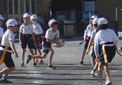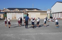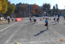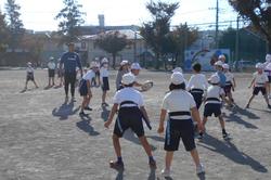 11月17日、3年生の学習で、タグラグビーの出前授業がありました。この日はラグビーチーム横浜キャノンイーグルスの方がお二人来てくださり、子どもたちに励ましの声をかけたり、よいプレーを称賛したりしてくださいまいした。晴天の下、子どもたちは、プロチームの方の話を聞き、楽しみながらプレーしていました。
