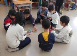 11月20日、1年生から6年生までのたてわり班で交流を深める「たてわり集会」がありました。今回は6年生が企画をするレクリエーションです。異学年集団で活動することを通して、相手を思いやる気持ちや協力する気持ちを育てたり、主体的に計画を立てて会を運営していく力を高めたりするものです。どの教室でも楽しく活動する様子が見られました。