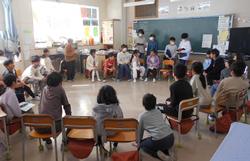 日吉台西中学校の皆さんが計画し準備を進めてくれた「魚釣りゲーム」や「ピンポン玉運びリレー」を行って交流を深めました。司会や代表の言葉を担当した人は、堂々とその役目を果たしていました。