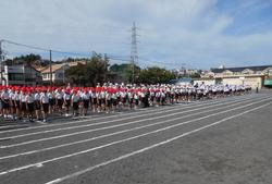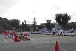 運動会に向けて各学年の取組が進んでいるところですが、全校での練習も行いました。開会式やラジオ体操、応援合戦や運動会の歌、そして大玉送りと、全校で取り組む種目の整列の仕方を確認したり実際に行ってみたりしました。大玉送りでは、1回戦の状況を見て、高学年の児童がアドバイスを伝える姿も見られました。