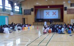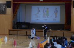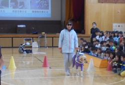 2年生と5年生が、視覚障害のある方に盲導犬との暮らしについて話を聞く学習をしました。子どもたちは、盲導犬が誘導する姿を見たり盲導犬を見かけたときにしてはいけないことを学んだりして、訓練され生活を共にしている盲導犬の大切さを感じ取っていました。