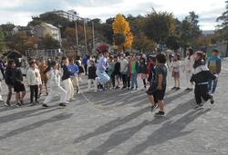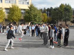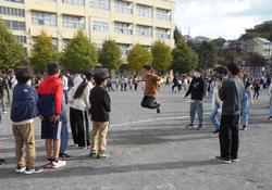 11月11日の朝、「スーパージャンプ集会」がありました。体力向上や仲間との協力をめあてに、3分間の長縄8の字跳びを行います。3分間で何回跳べたかが記録になり、「クラスの記録を伸ばしていこう」と、休み時間にも挑戦する人もいました。子どもたちは、声をかけ合って挑戦していました。