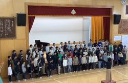 最初の発表だった3年生は、ひとクラスが学級閉鎖でしたが、その分も盛り上げていこうという気持ちの伝わってくる発表でした。「笛星人」のメドレーは、同じ笛でも優しい音色、元気な音色、穏やかな音色など、様々な表現がありました。「グッバイ また明日ね」は、友達を思う気持ちが伝わる歌声でした。「MUSIC」は、入るタイミングの難しいところも息をそろえていて素晴らしかったです。