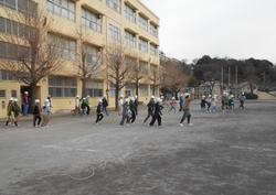 1月15日に、避難訓練を行いました。今回は、昼休み中に地震が起こったという想定で、訓練の予告をせずに行いました。休み時間中なので、教室にいた人もいれば、廊下や階段、校庭にいた人もいます。それぞれの場所に応じて安全を確保する身の守り方を、事前に確認しておきました。子どもたちには「全員が避難しているか学級の人数確認をするまで静かに待つ」ということも必要になります。安全に避難し迅速に確認するための約束を改めて確認しました。