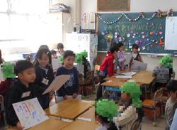2月18日、幼稚園、保育園の年長さんと交流会を行いました。5年生が歓迎の歌を披露し、1年生の教室まで案内しました。5年生は、4月から新6年生としてペア学年になります。1年生の教室では、学校のことを知ってもらおうと学校クイズをしました。学校を案内する1年生は、頼もしいお兄さんお姉さんでした。