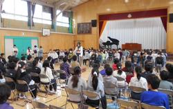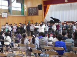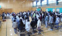 駒林小学校では、卒業式に在校生は参加しませんが、予行練習のときに5年生が参加しています。6年生にとっては、自分たちだけでない雰囲気での経験をすることができ、5年生にとっては、卒業式の1年後の姿をイメージすることのできる場になっています。